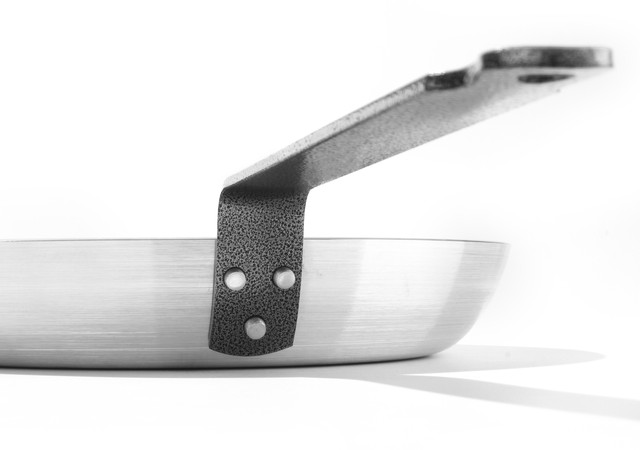 Причому, чим легша алюмінієва сковорода, тим швидше вона прийде в непридатність. Річ у тім, що тонке дно з алюмінію дуже погано переносить перегрівання і швидко змінює форму. Тому в алюмінієвих сковородах дно обов'язково має бути товсте, не менш ніж 5 мм у сковороди для м'яса та не менш ніж 2 мм — для млинців. Імій на увазі, що дешева штампована сковорода з тонким дном може підійти тільки для газової плити. На електричній плиті, у якій температура нагрівання набагато вища, штампована алюмінієва сковорода відразу ж деформується через перегрівання. Більш довговічними є важкі литі алюмінієві сковороди з товстим дном (не менш ніж 6 мм), які зазвичай можна використовувати й на електроплітах.