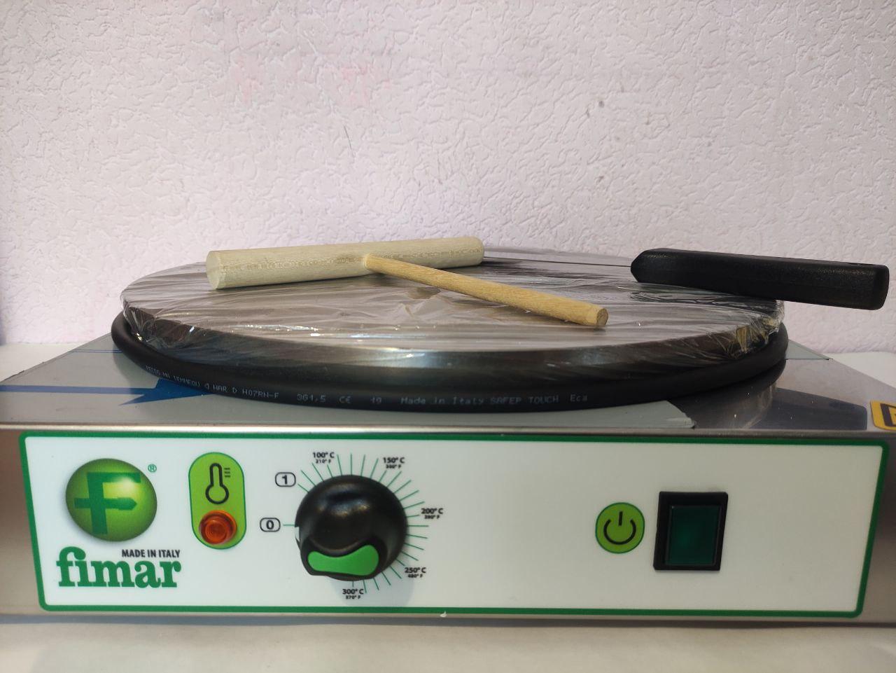Комплектація: У комплекті до млинниці Fimar CRP входять дерев'яна паличка для рівномірного розподілу тіста та лопатка для зручного перевертання млинців. Також пристрій постачається з гарантією на 12 місяців.