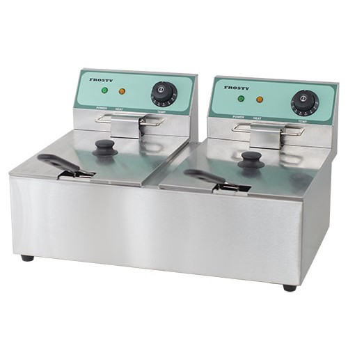 Фритюрниця оснащена "холодною зоною", що подовжує термін служби масла. Завдяки знімним ємностям легко підтримувати чистоту приладу. Пристрій обладнаний світловими індикаторами режимів роботи та термостатом, який запобігає перегріву масла, забезпечуючи безпечну експлуатацію. Максимальна робоча температура становить 190 °C, а потужність – 2,5+2,5 кВт, що дозволяє швидко нагрівати масло до потрібної температури.